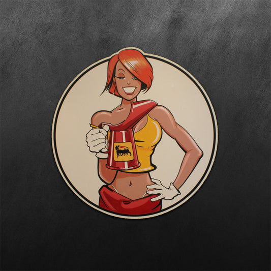 Red PinUp Girl Sticker Agip Oil