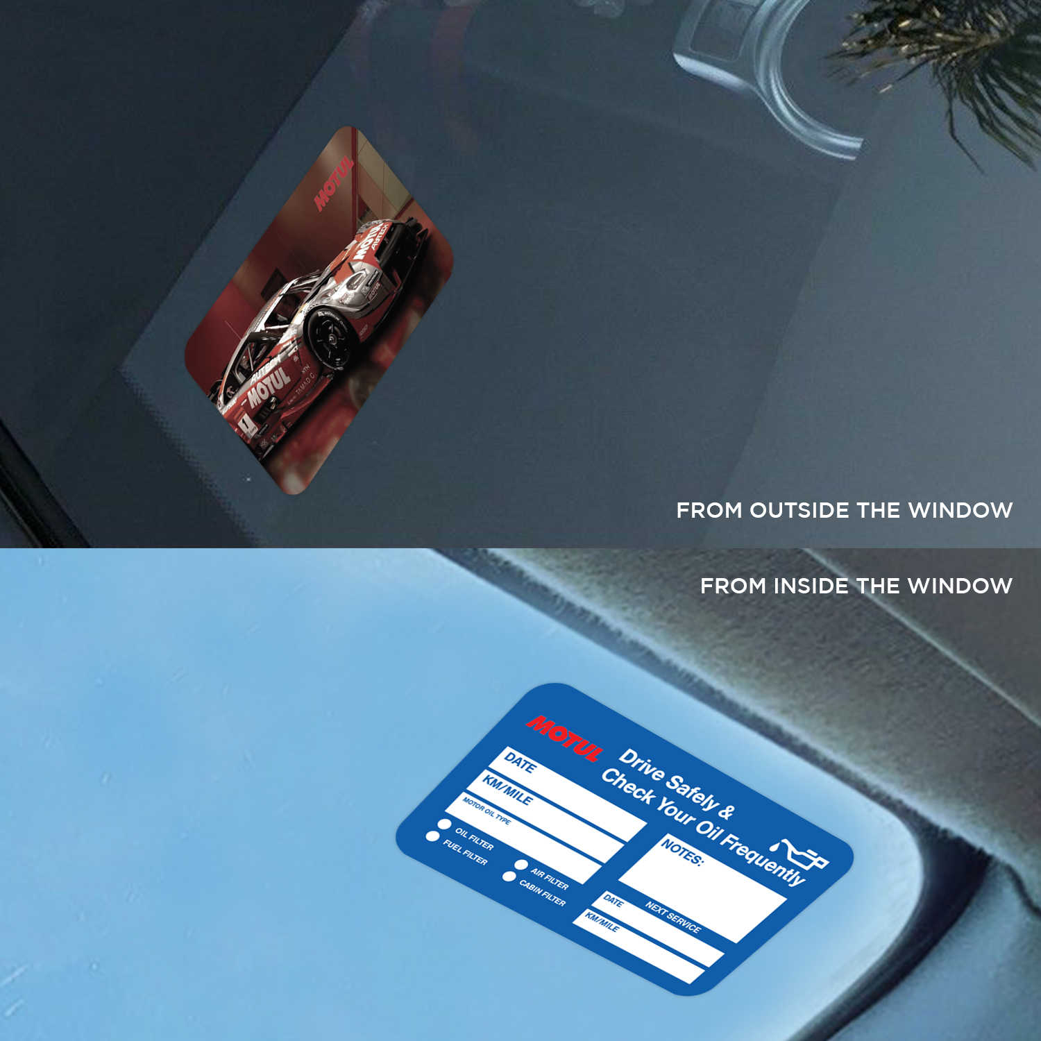 Our oil change stickers are designed to firmly hold to any car window and can be removed with no residue. This particular design will also help as a reminder to use liqui moly oil as the standard oil for the car.