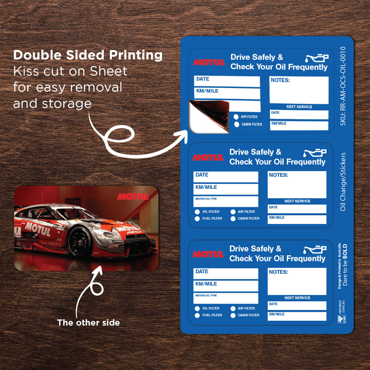 Motul Oil Double Sided Drive Safely & Check Oil Frequently Vinyl Decal Sticker