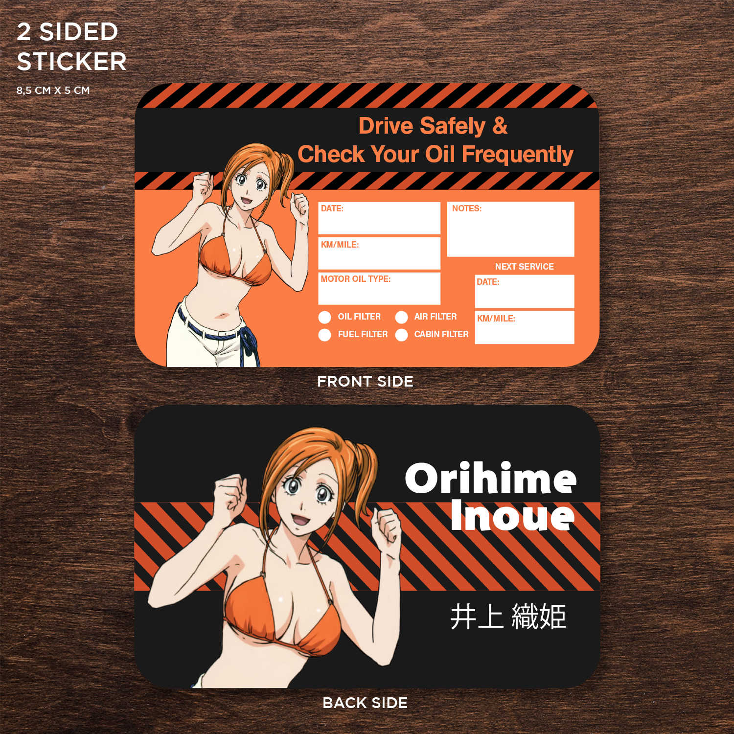 Orihime Inoue Double Sided Drive Safely & Check Oil Frequently Vinyl Decal Sticker