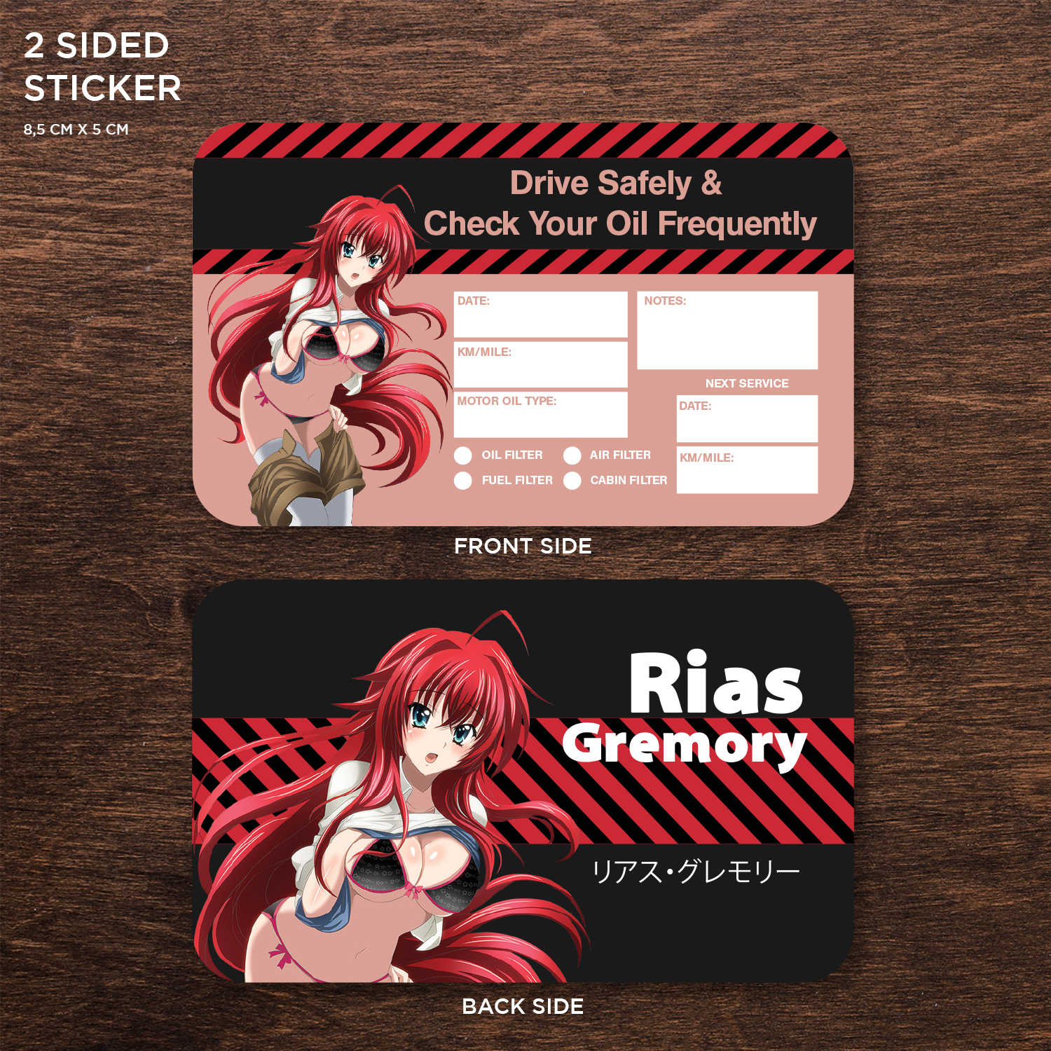 Rias Gremory Double Sided Drive Safely & Check Oil Frequently Vinyl Decal Sticker