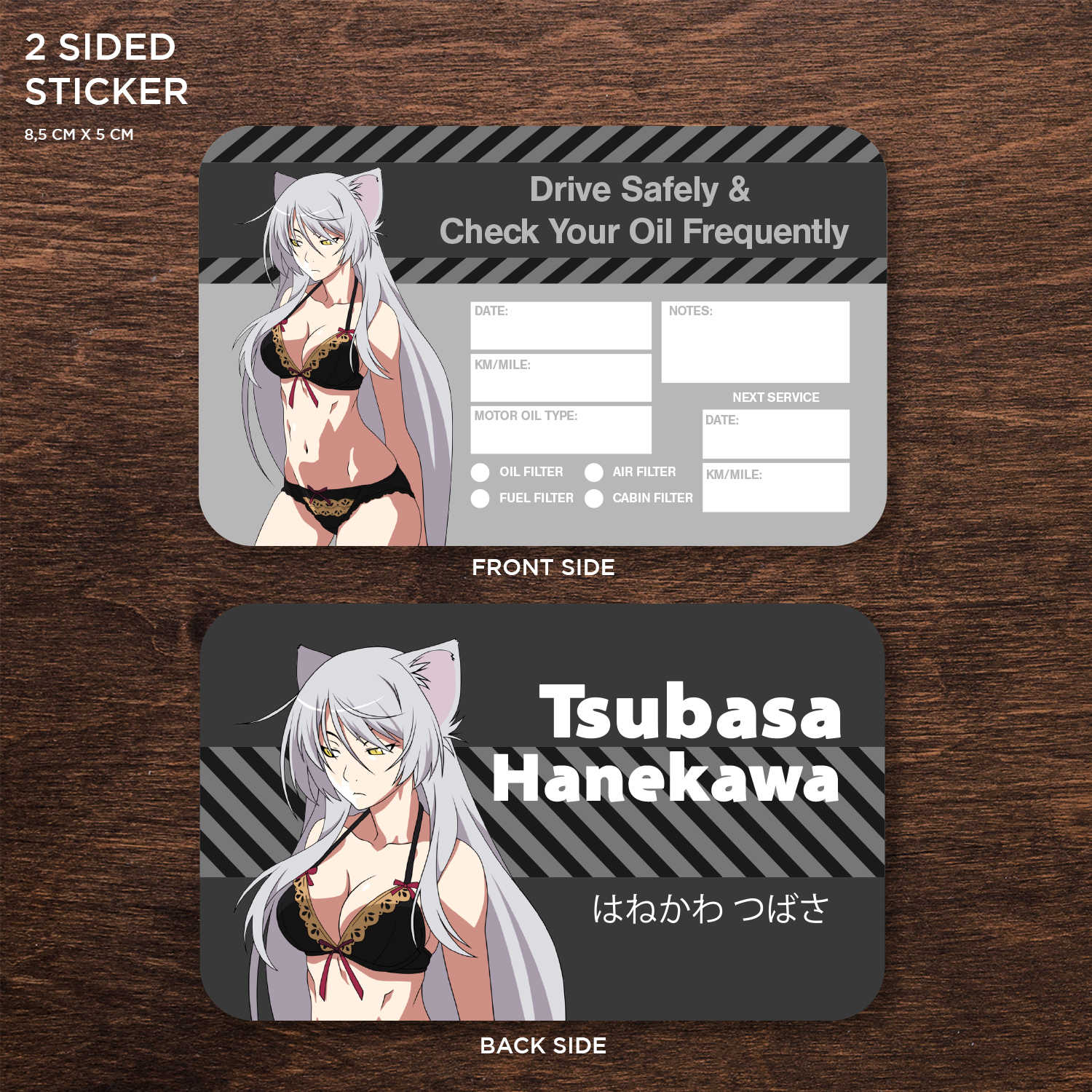 Tsubasa Hanekawa Double Sided Drive Safely & Check Oil Frequently Vinyl Decal Sticker